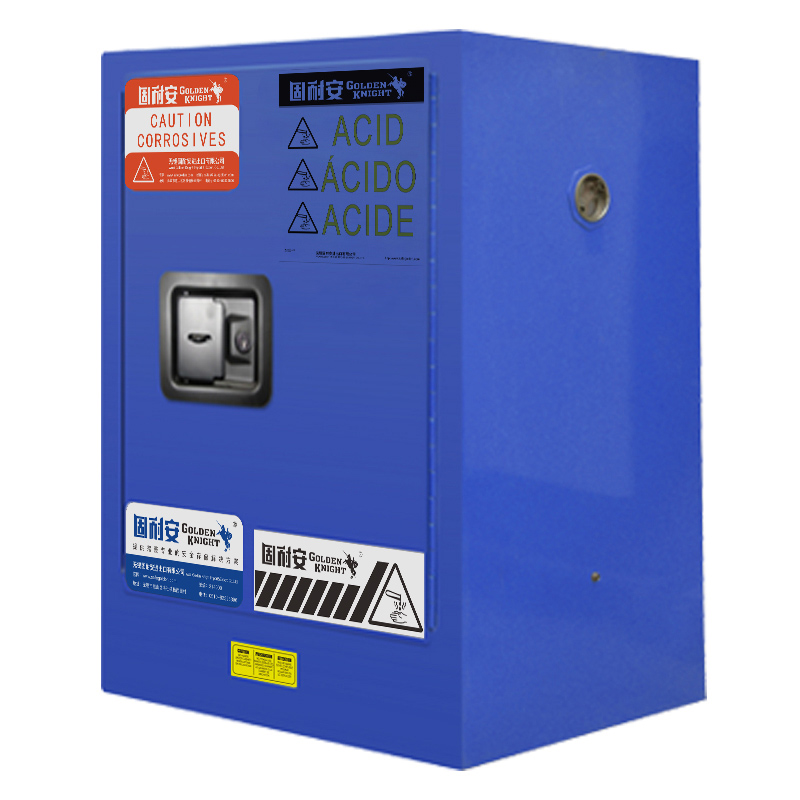 12加侖藍色弱酸堿安全柜產品是指容積為12加侖/45升的一種防弱腐蝕危險品安全柜。采用1.2m冷軋鋼板制作而成,底部設計防泄露門檻,可留滯外泄液體。固耐安廠家直銷,價格優惠,保質保量!