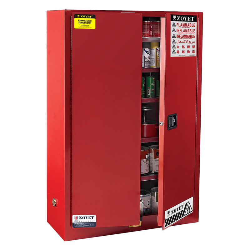 這是容積為90加侖/340升的一種用于存放可燃液體的紅色防爆柜。防爆柜采用優質冷軋鋼板磷化處理而成,耐腐蝕更好。固耐安有專業的售后人員為您服務!