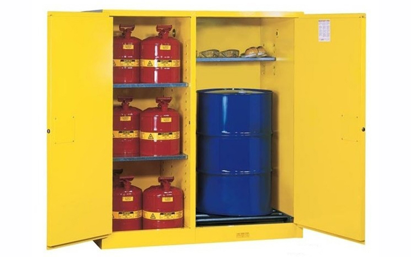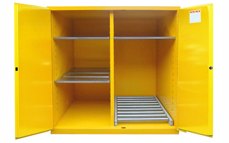 產品簡介:是指可以存放兩個以上200L圓桶的油桶防爆柜,是雙開門,可配油桶滾筒底座等。
