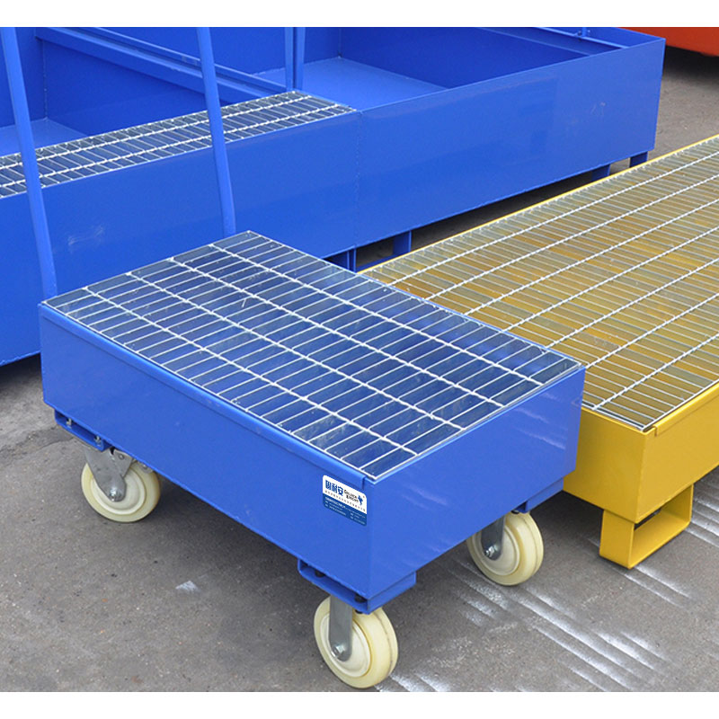 眾所周知,油桶一般遇到的質量問題是泄漏,造成的事故與環境污染是不可忽視的,所以油桶的存放是油桶安全使用的重要環節之一。另外,IBC集裝桶、塑料桶、化工桶、化工容器、小油桶在運輸、使用的過程中,經常也會因為碰撞、腐蝕等各種原因發生損壞,造成泄漏。一般工廠都將油料等散放至廠房一角,時間久了難于保持清潔并且容易受到污染或是泄漏而不知。鋼制貯存盤的出現很好的解決油桶存放及泄漏的問題,還可配上腳輪方便油桶的移動。